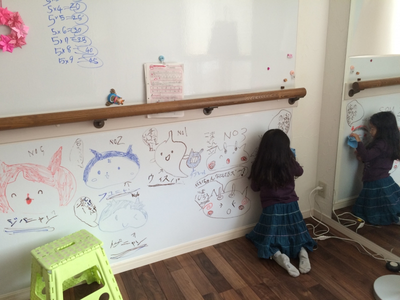 壁一面の 大きな ホワイトボードをつけました。