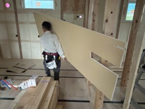 外周の石膏ボード施工が終わると